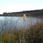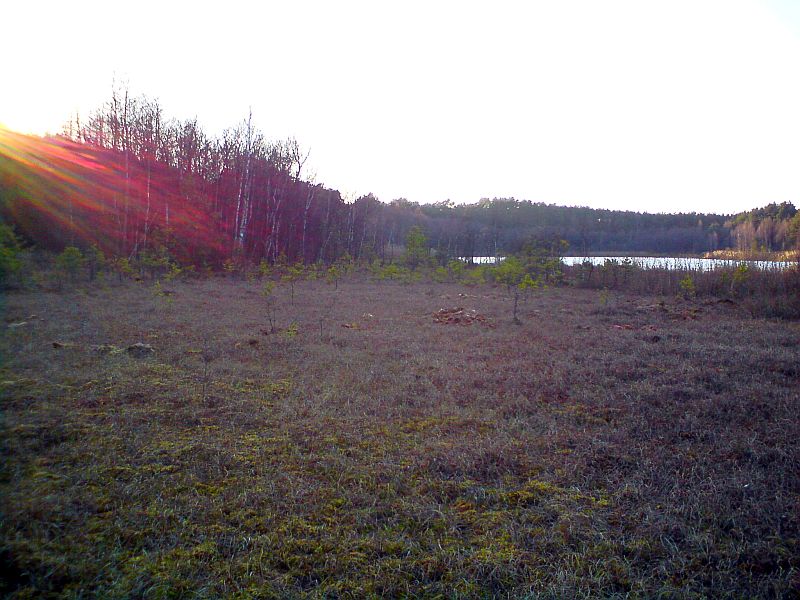 Brzegi jeziora przechodzą w tereny podmokłe i trudno dostępne.